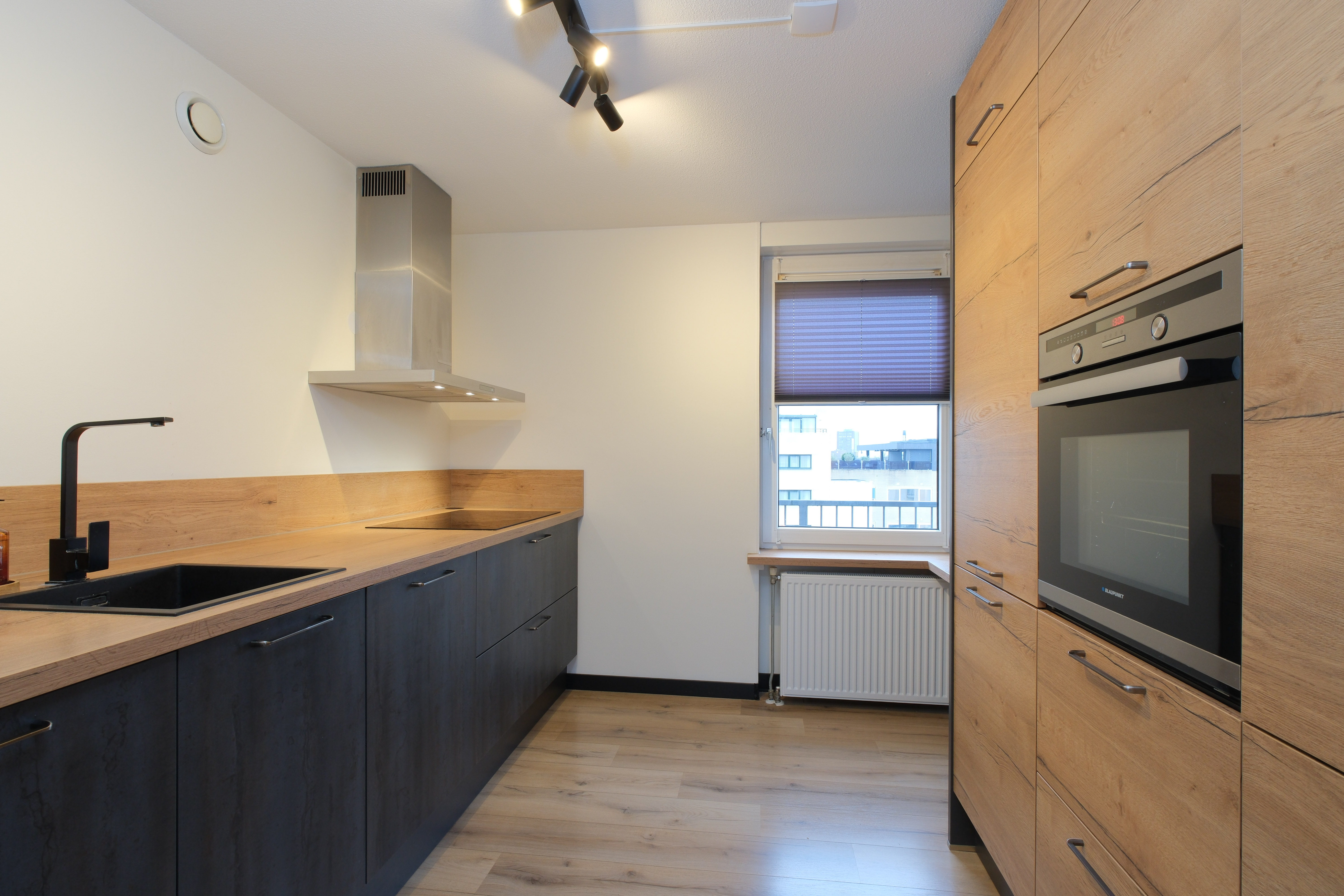 De dichte keuken (2019) is modern uitgevoerd en van alle gemakken voorzien. Strak, praktisch en met een rustige uitstraling; koken mag hier gezien worden.