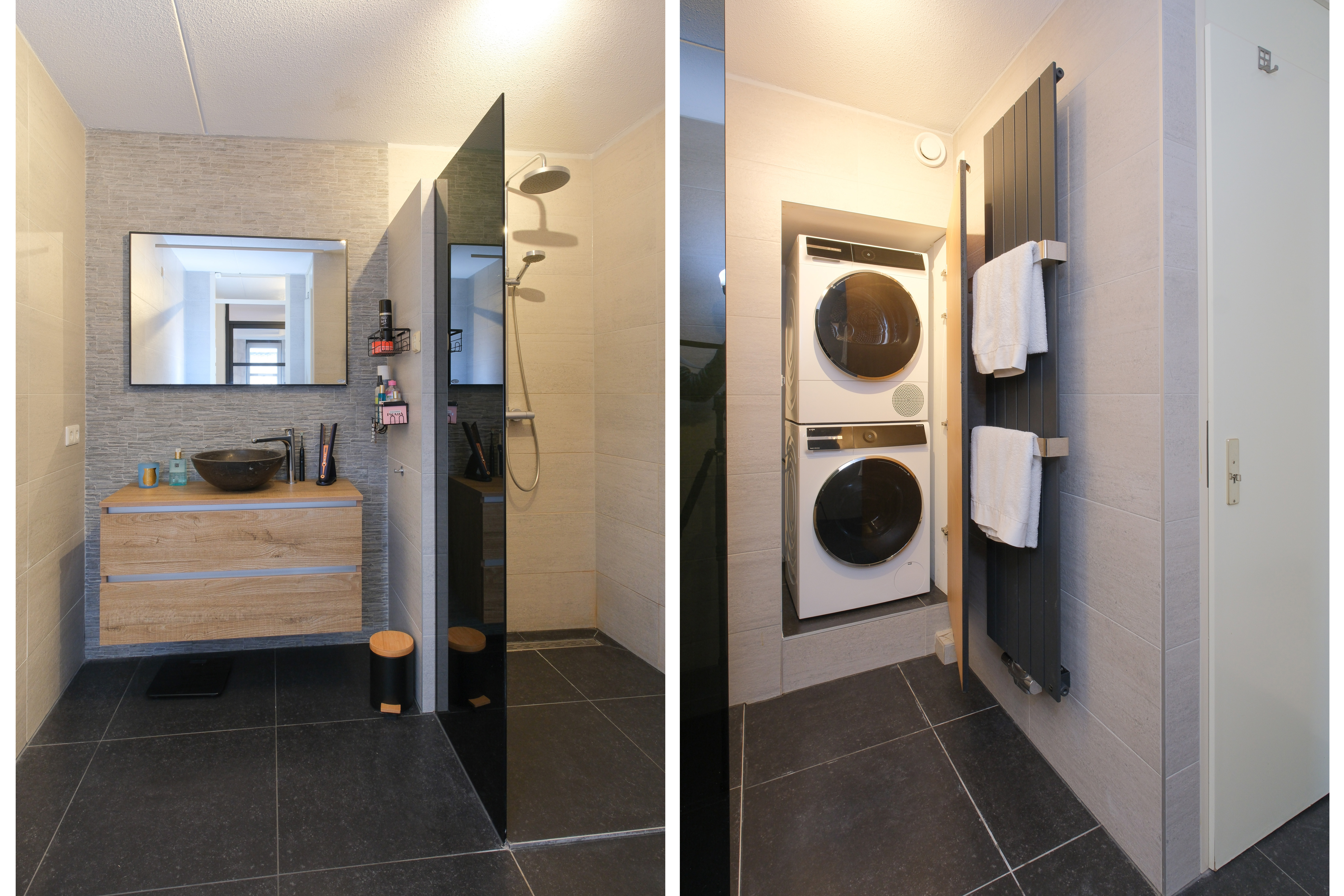 Daarnaast is er een vaste kast met opstelplaats voor de cv-installatie en is witgoedvoorziening eveneens keurig uit het zicht geplaatst.