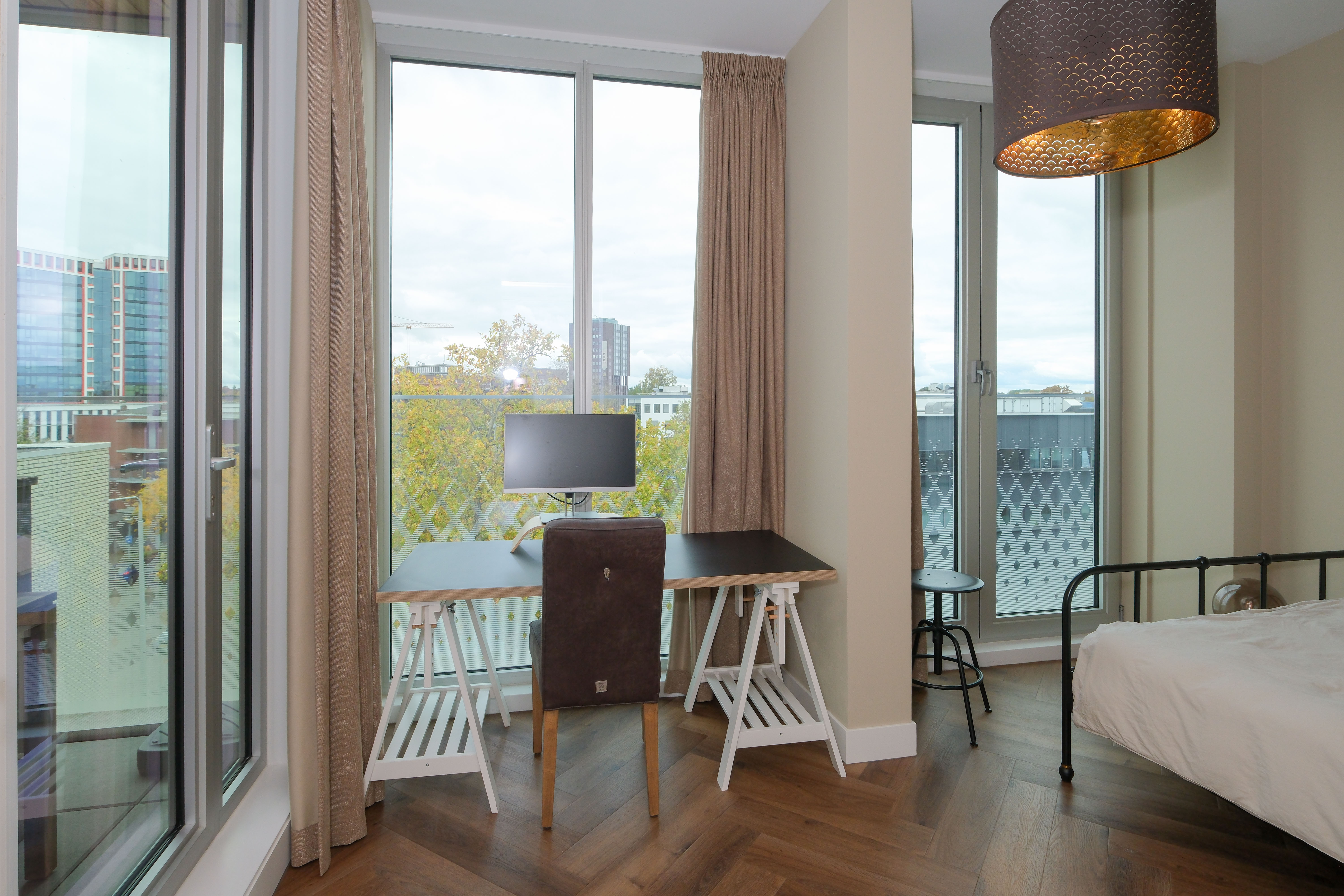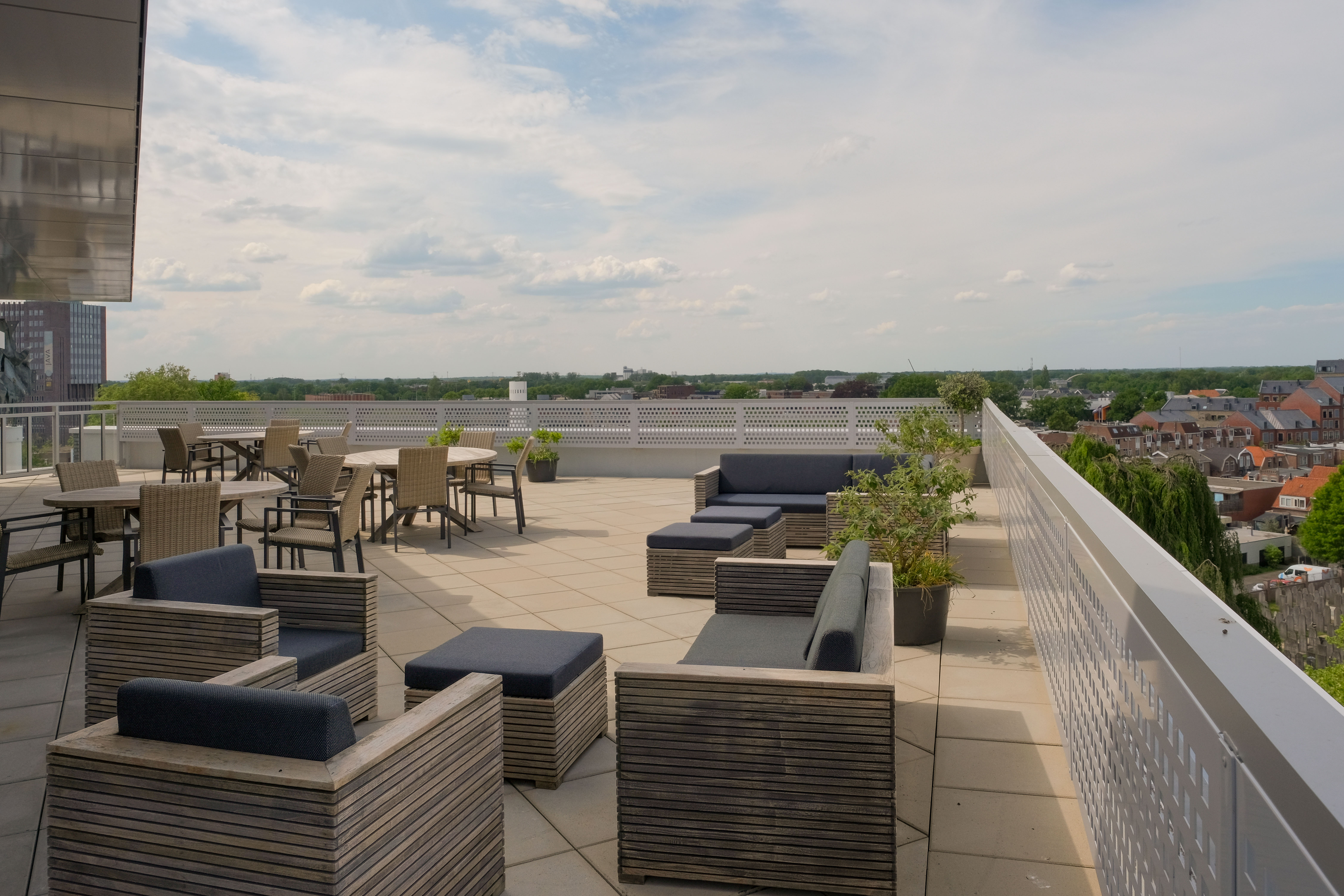 Op de zesde verdieping wacht een prachtig dakterras met uitzicht over de stad – de perfecte plek voor een goed gesprek of een glas wijn in de avondzon. Binnen is er een gezellige huiskamer en een logeerkamer voor gasten. Hier is aan alles gedacht.