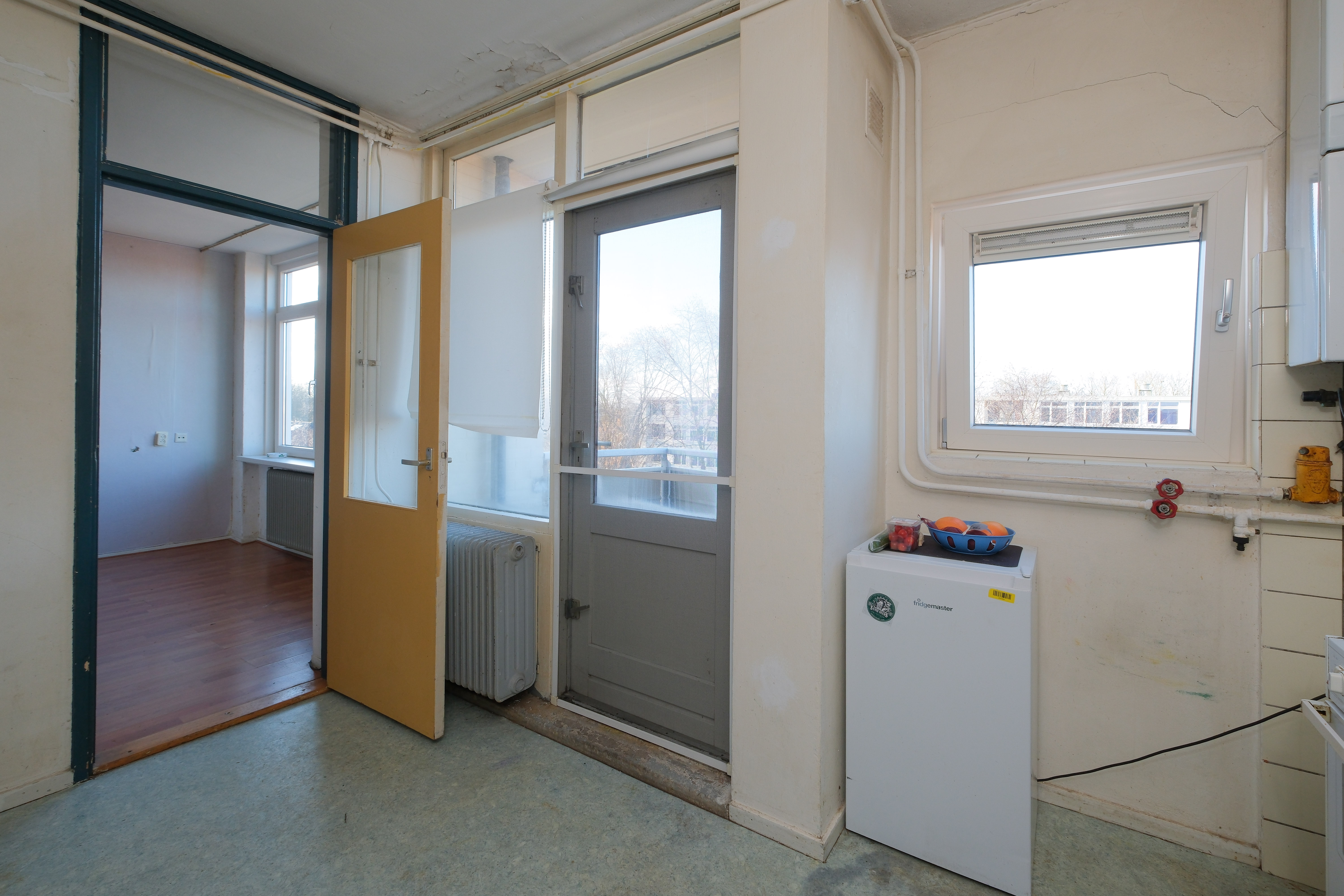 Op de vierde verdieping in de wijk Ossenkoppelerhoek ligt dit ruime drie-kamerappartement met eigen berging in het souterrain.