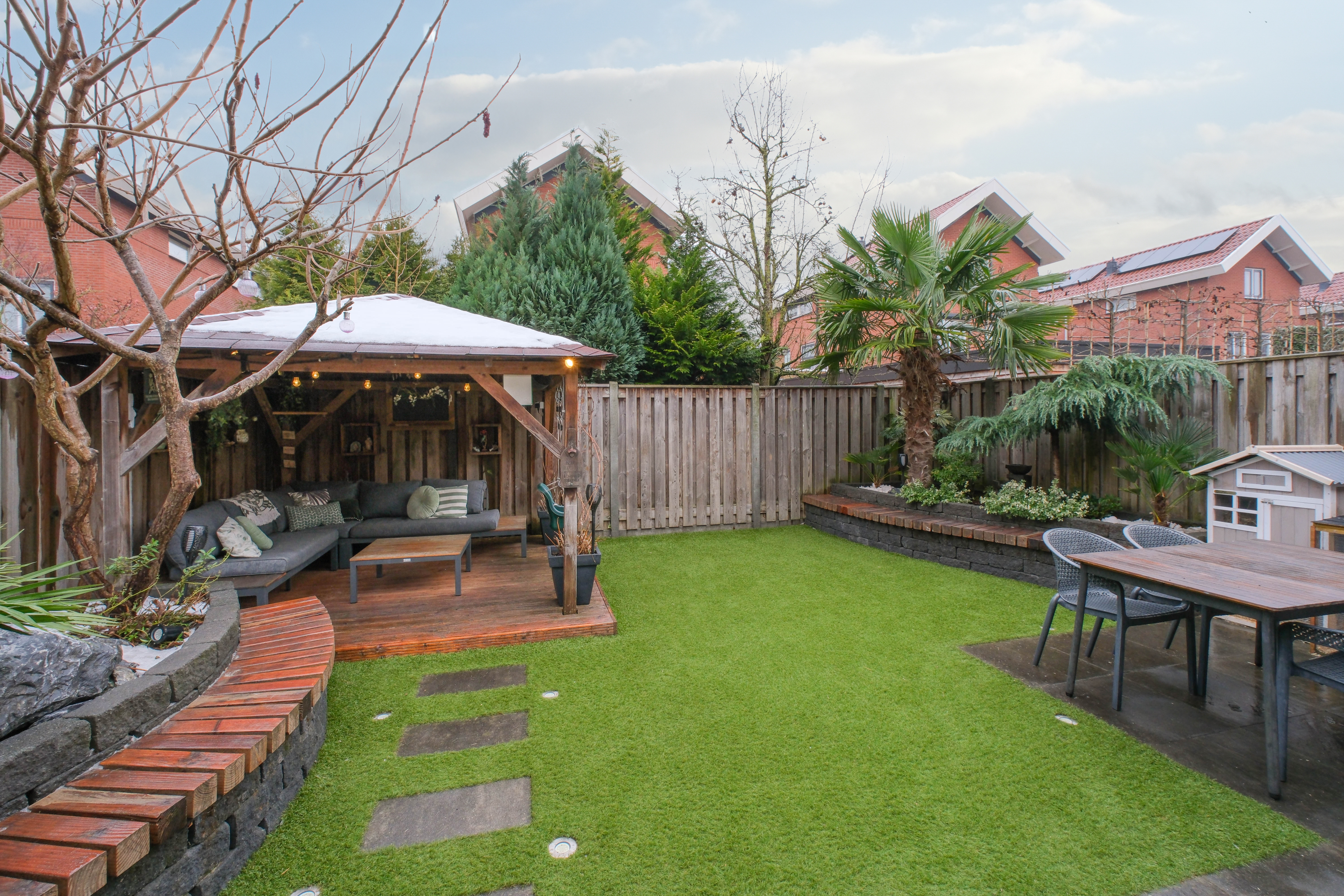 De woning is gebouwd in 2002, wat betekent dat je hier woont in een huis met uitstekende isolatievoorzieningen. Aanvullend heeft de huidige eigenaar de woning uitgerust met een vernieuwde Remeha Calenta CW5 combiketel, drie airco’s en 15 zonnepanelen (ca. 370 Wp per paneel).