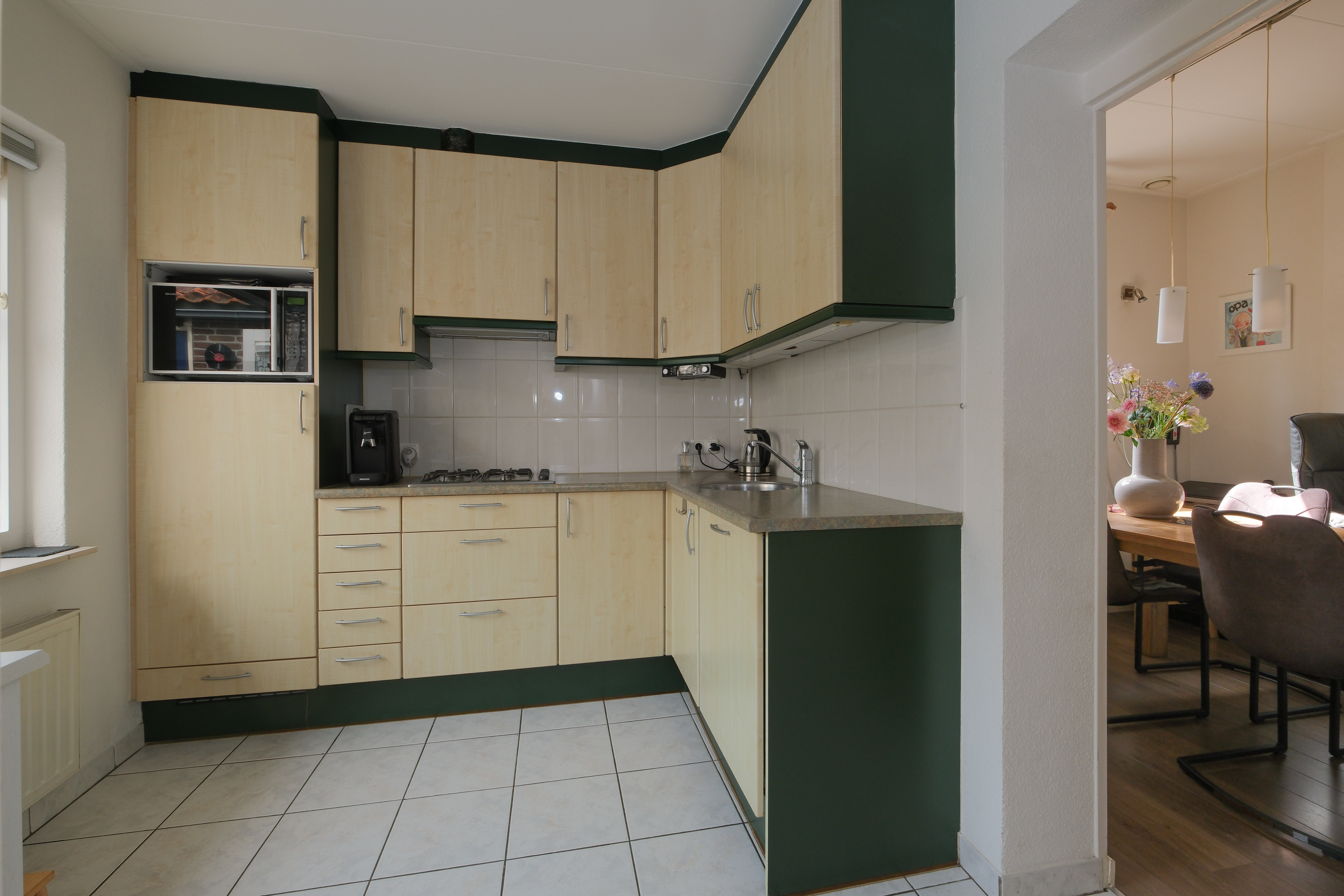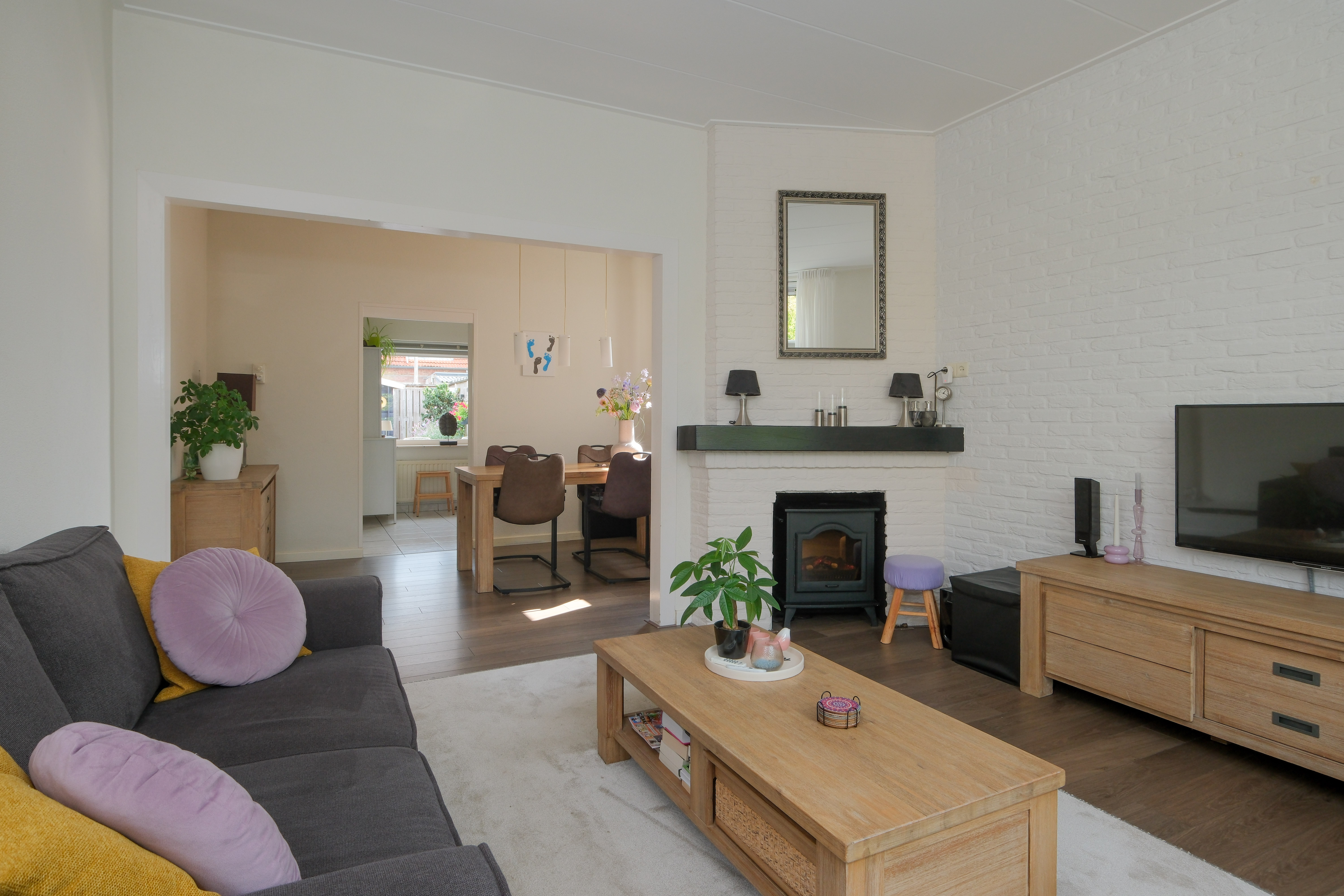 Aan de voorzijde kijk je uit op het groene Louise van Haaften-plantsoen – een vrij uitzicht zonder inkijk, ideaal voor een frisse wandeling of spelende kinderen voor de deur. Binnen is het net zo fijn: een uitgebouwde living met veel licht, een sfeervolle elektrische kachel en ruimte voor een royale zithoek én eethoek. De halfopen keuken sluit daar mooi. De trapkast biedt slim extra bergruimte.