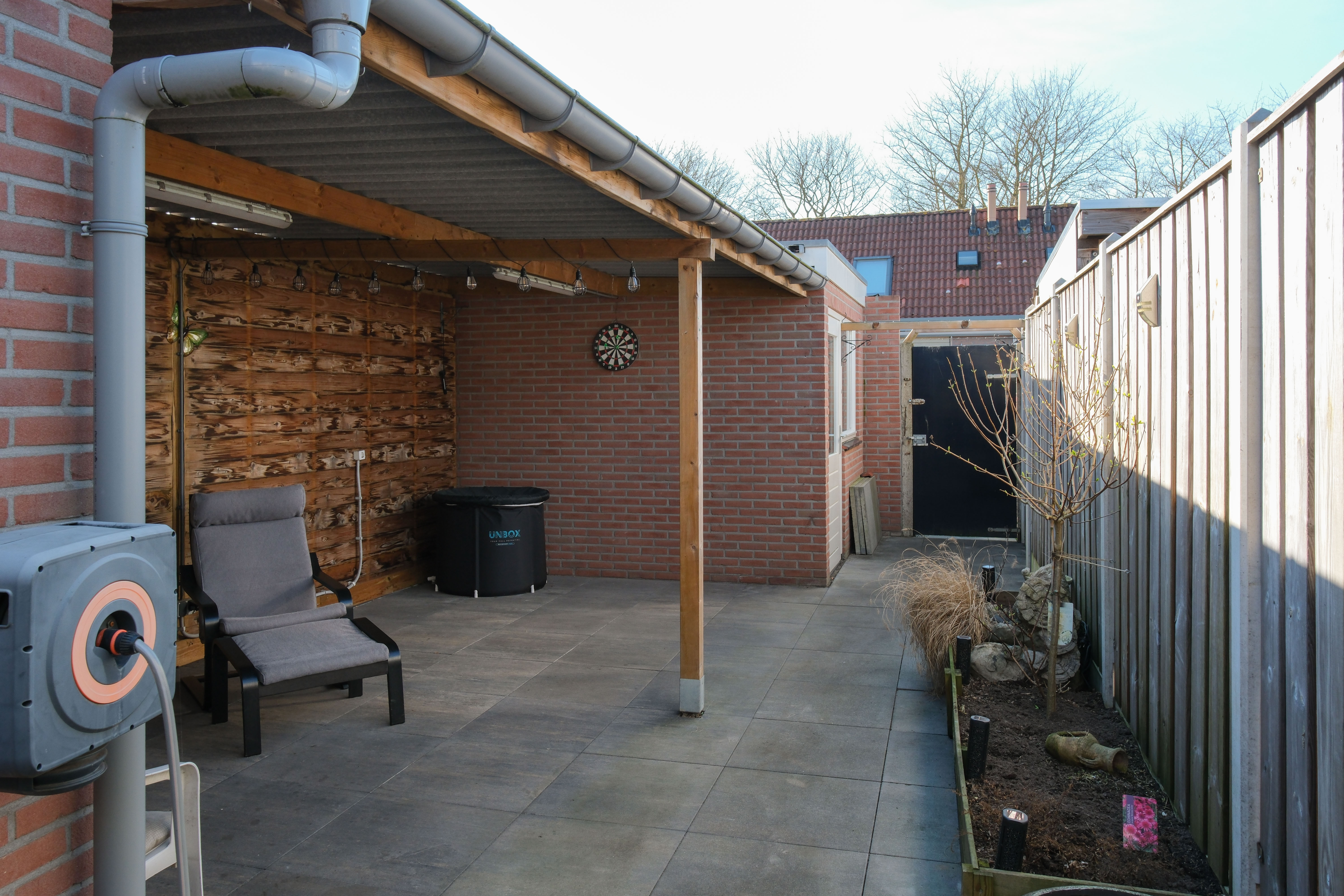 En met de recent nieuw geplaatste overkapping zit je hier ook als het weer even tegenzit gewoon goed. Een stenen berging (bereikbaar via een eigen achterom) is perfect voor het stallen van o.a. fietsen en andere grote spullen.