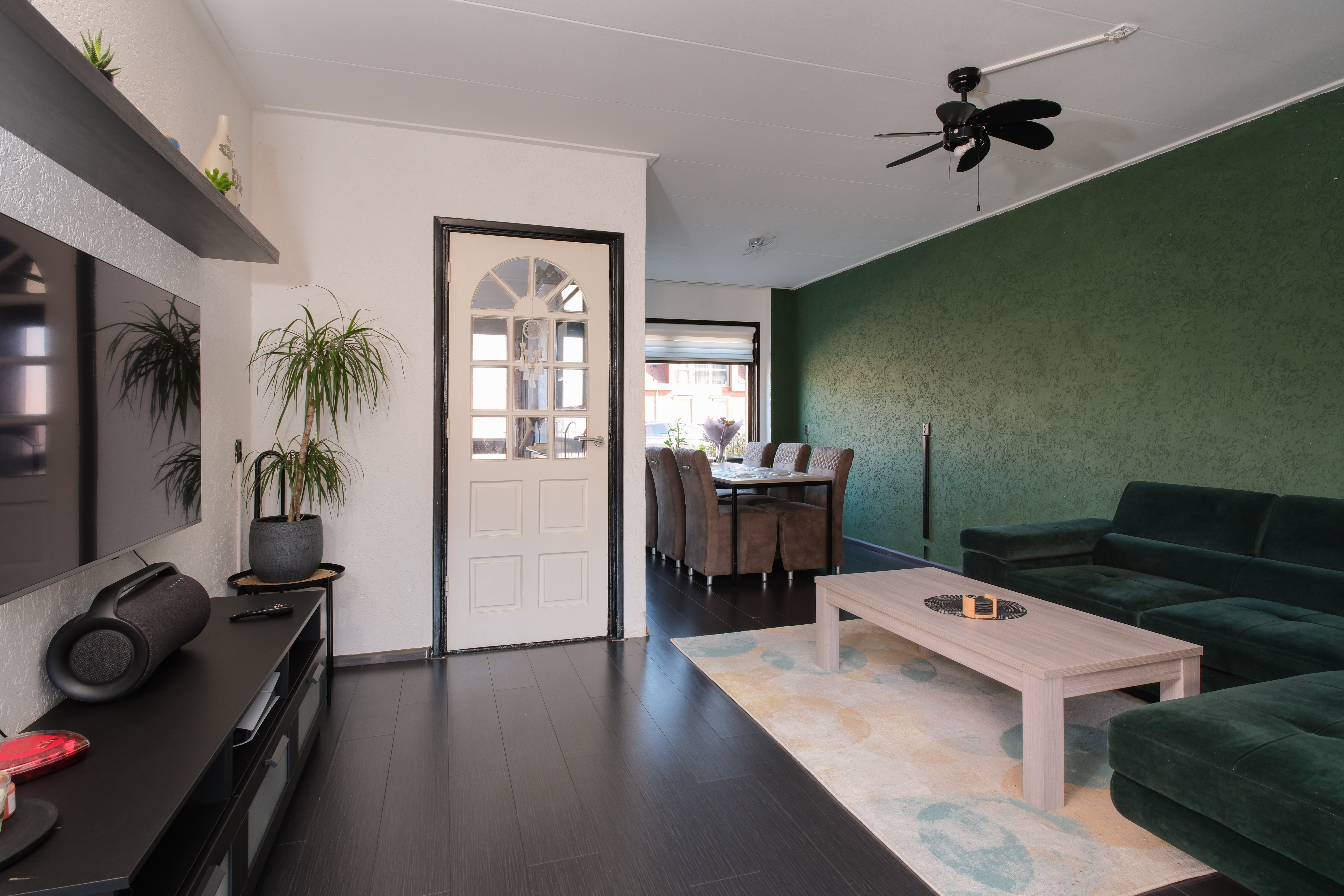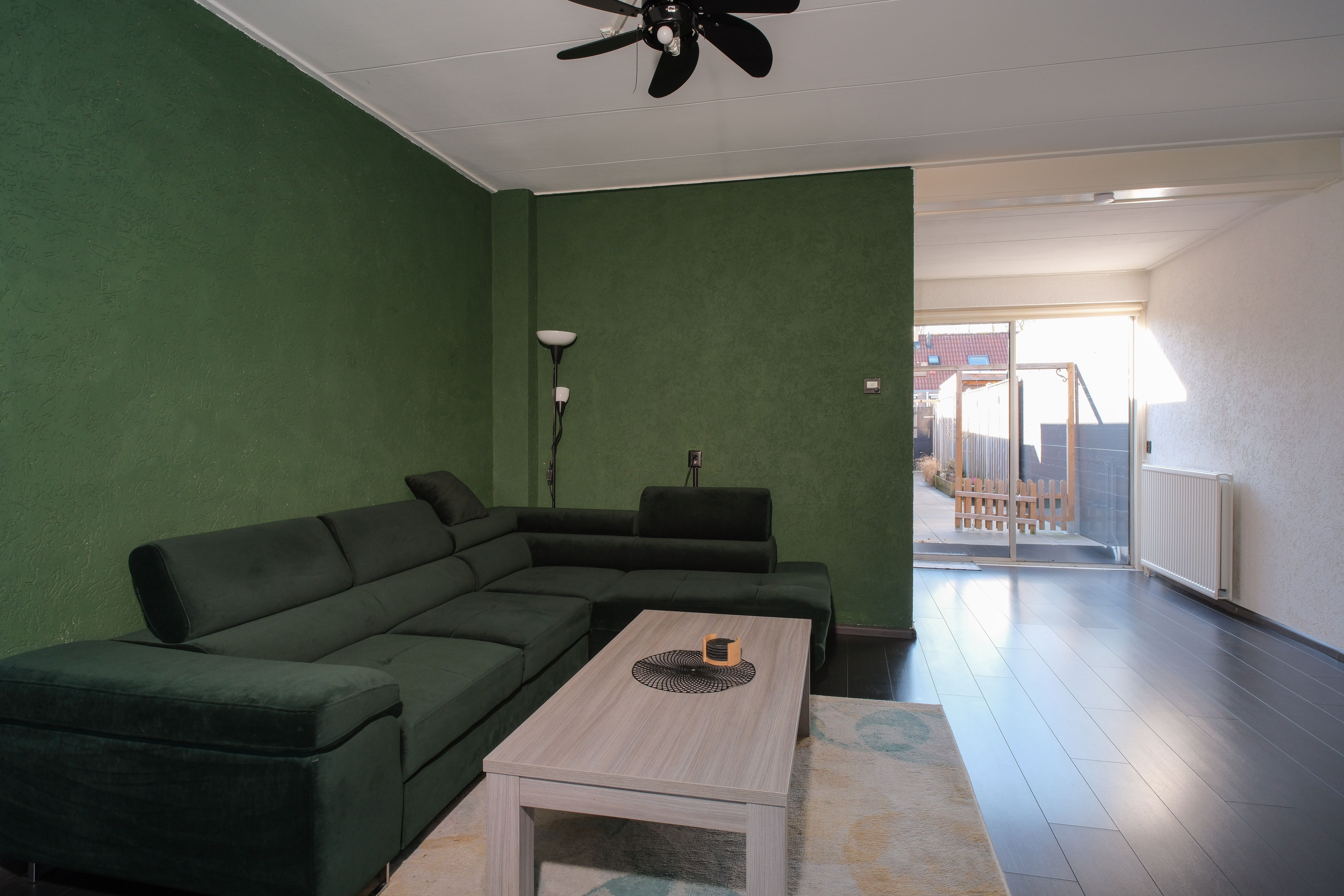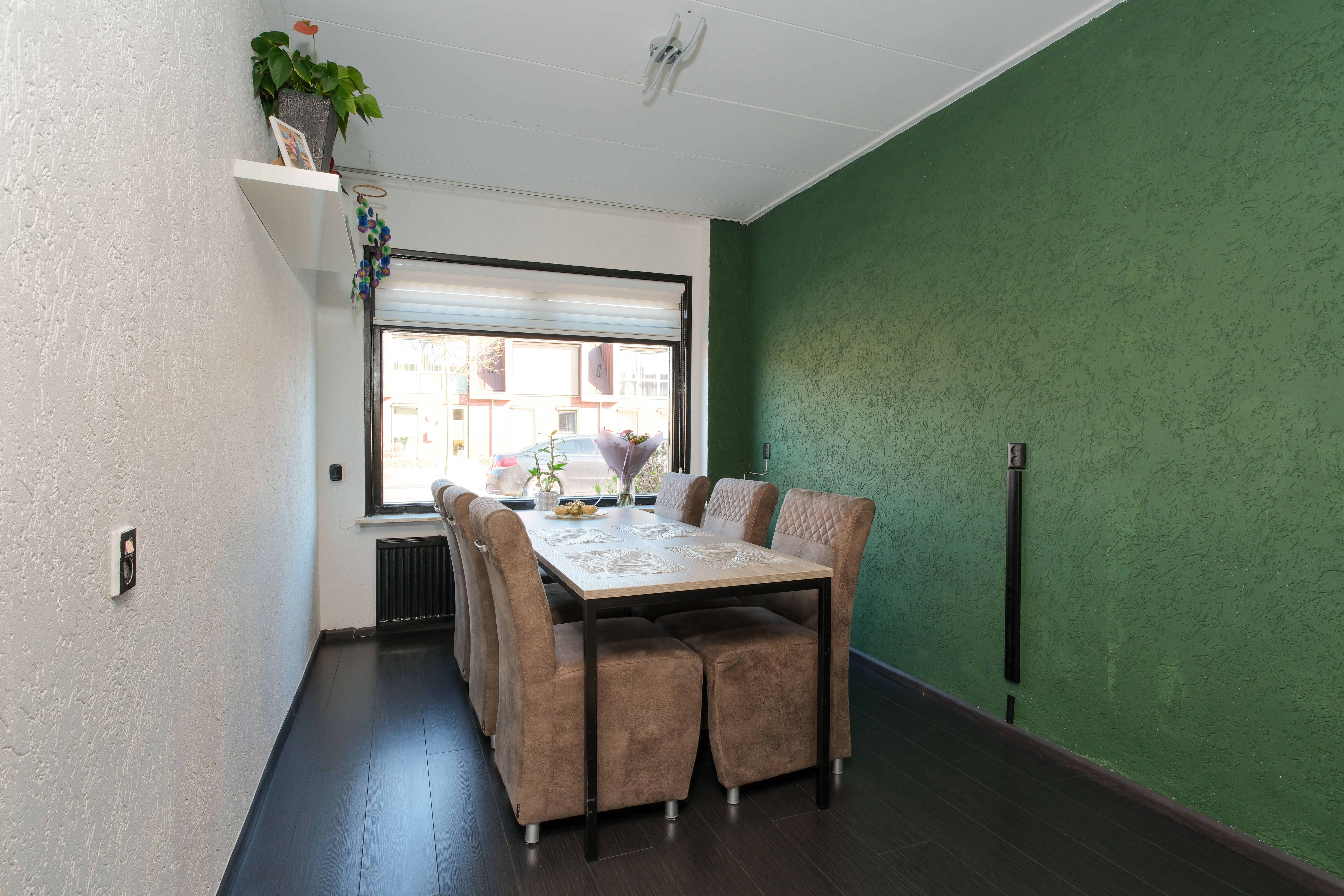De woonkamer is ruim, licht, verzorgd afgewerkt en voelt meteen prettig aan. Alle mogelijkheid vind je hier voor het creëren van een royale zitgedeelte en een prettige eethoek. Beloofd.