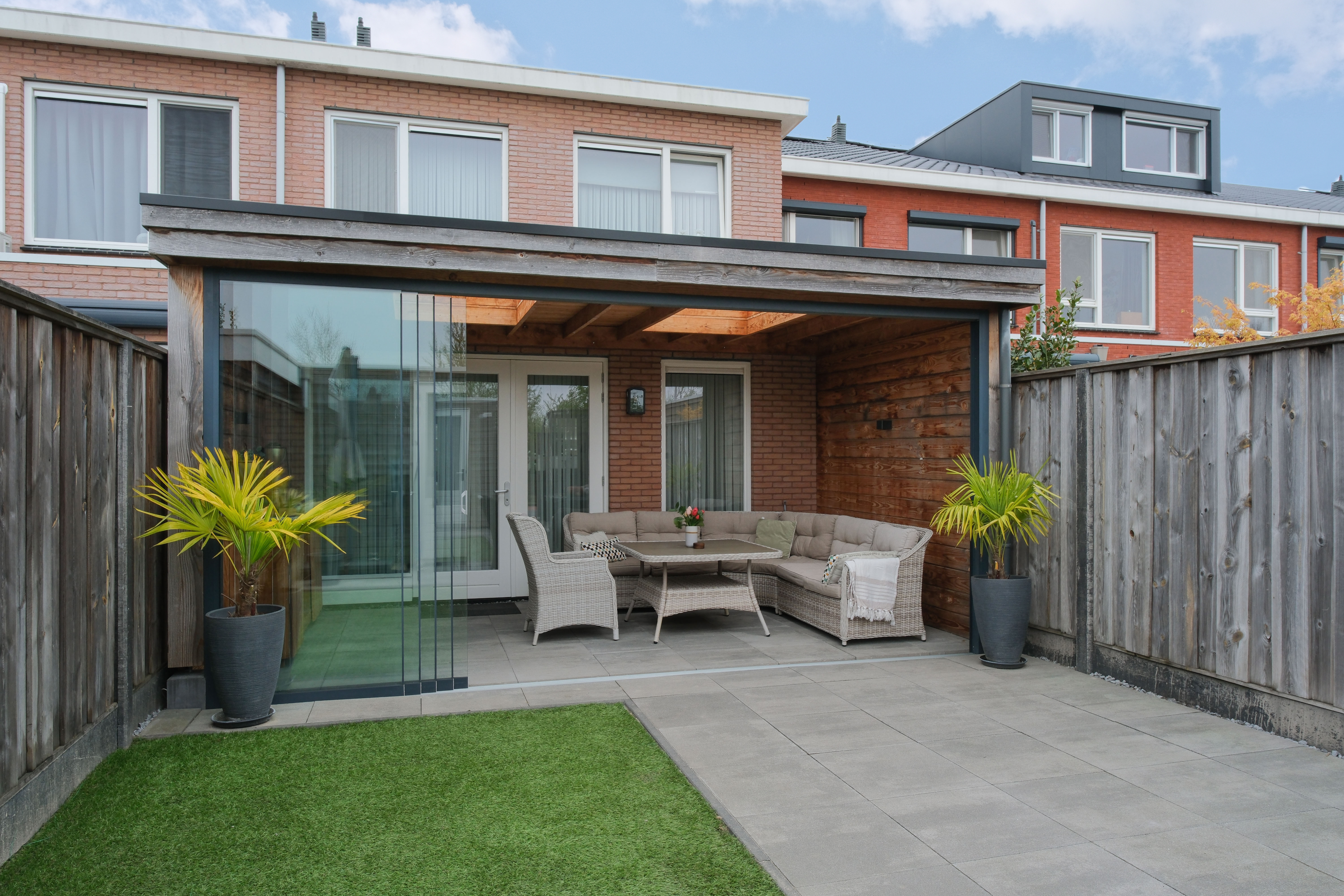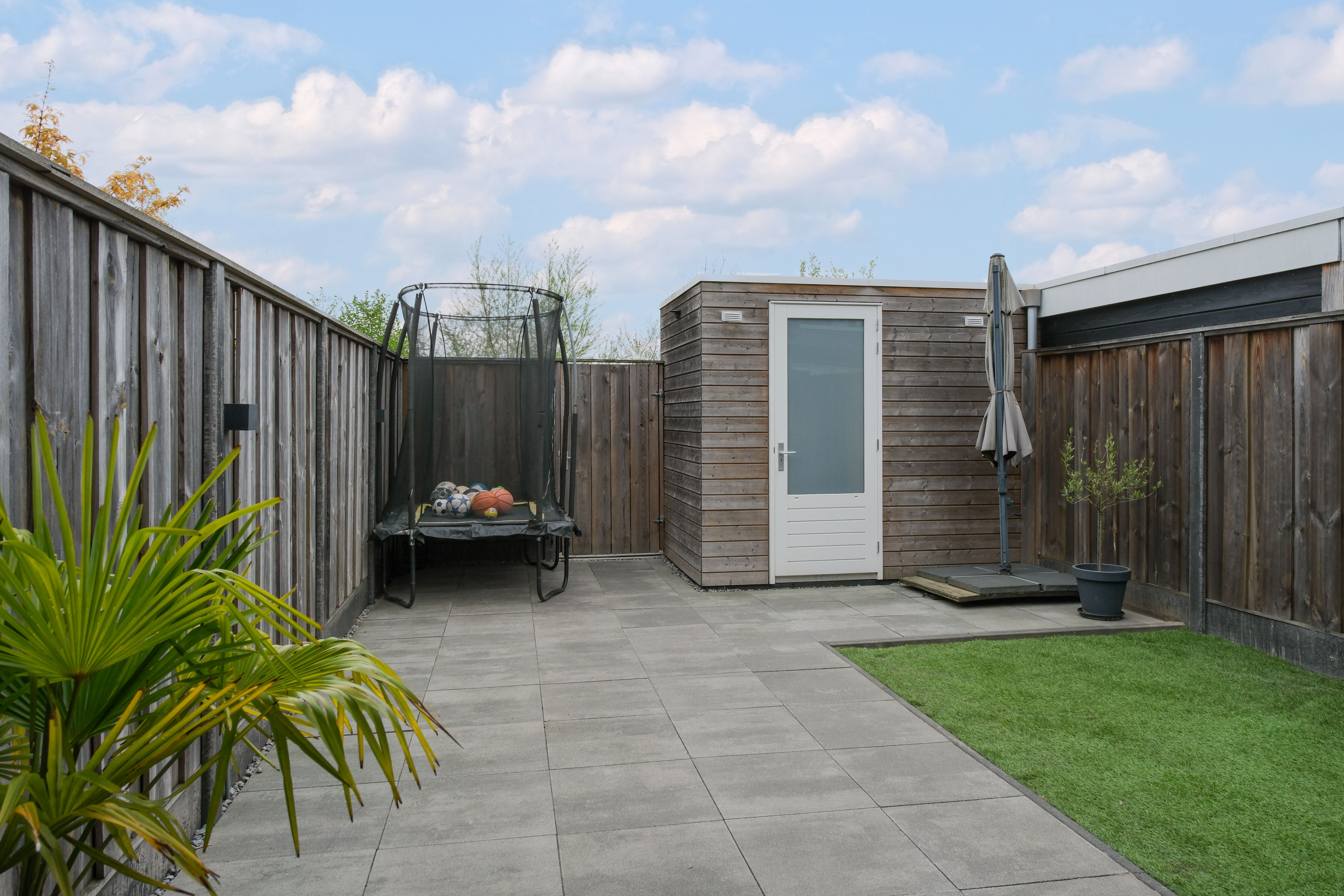 Via de openslaande deuren stap je zo je zonnige tuin op het zuiden in. De tuin is strak aangelegd, biedt ruimte voor spelende kinderen en is volledig omsloten. Je ervaart veel vrijheid doordat je geen directe achterburen hebt. Achterom bereik je de dubbele oprit met carport en uiteraard is er een praktische berging aanwezig.