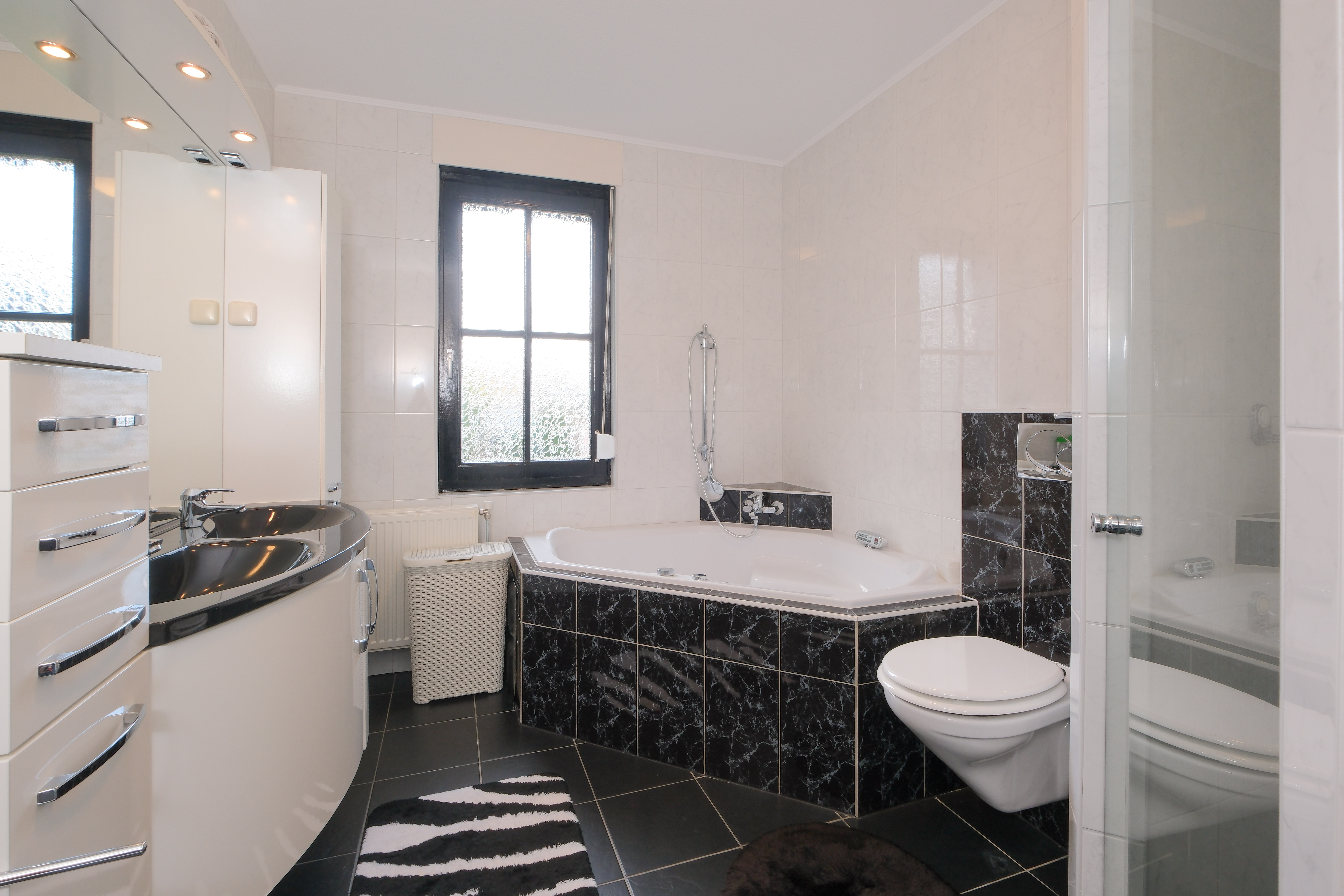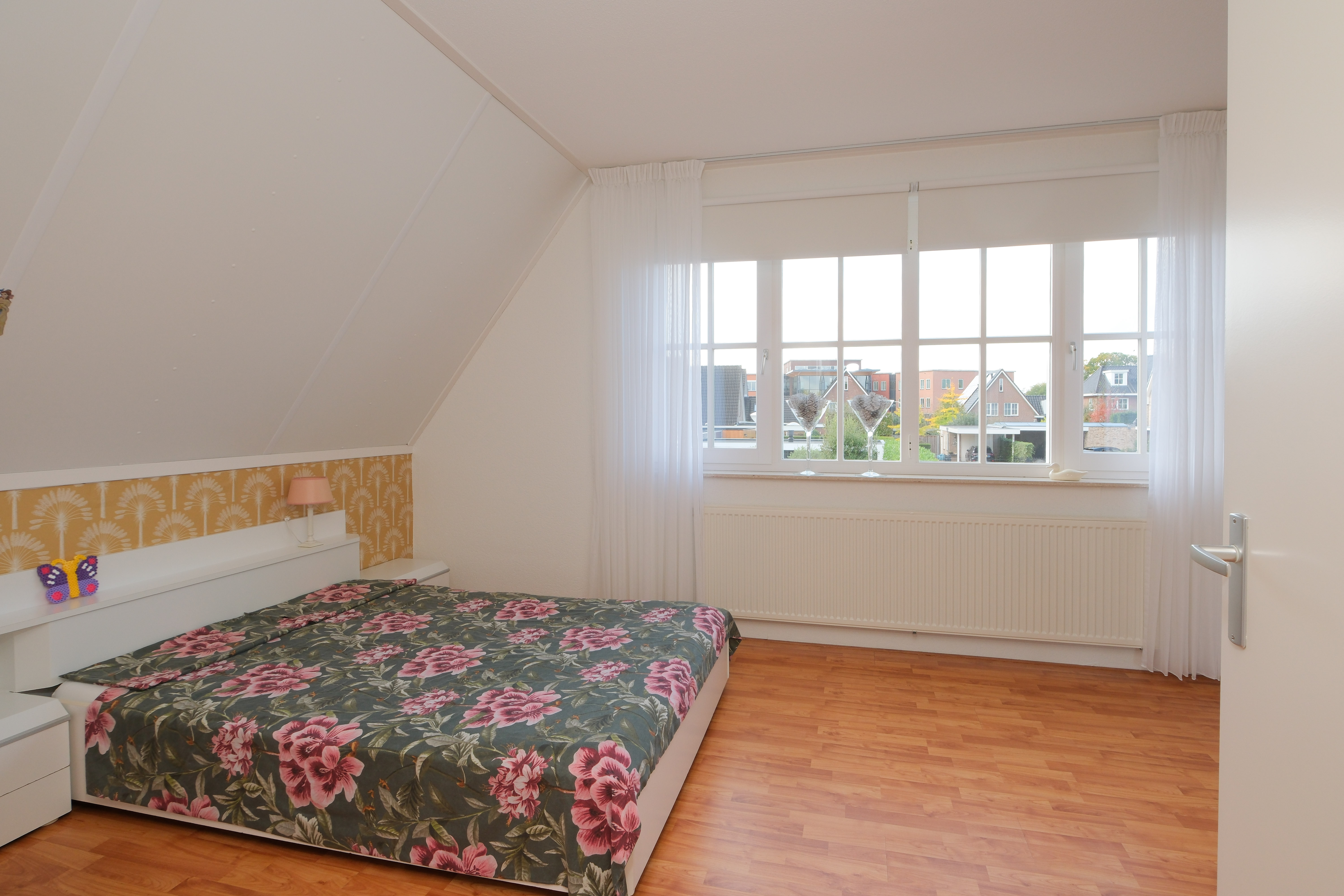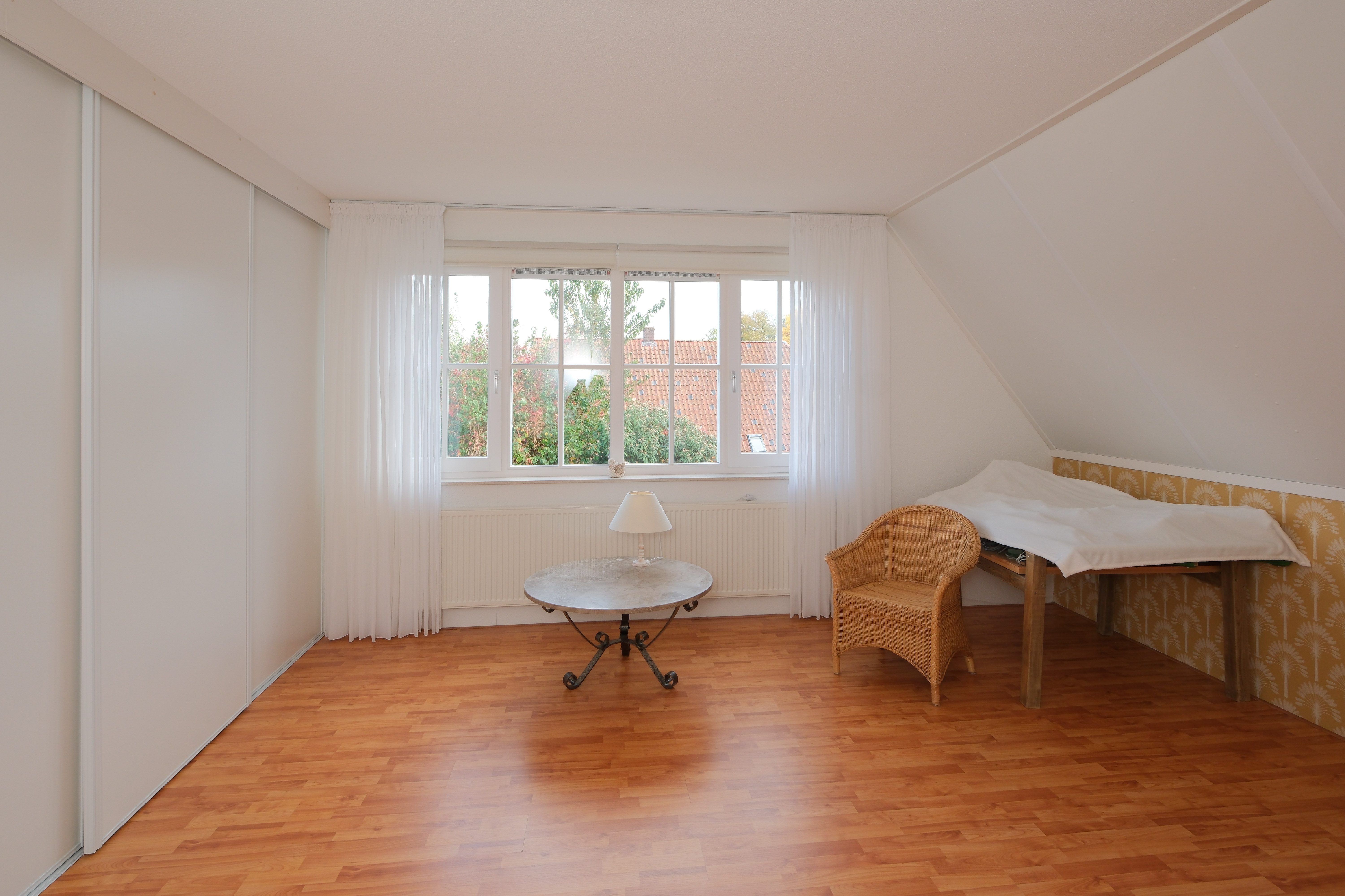 De eerste verdieping biedt nog twee fijne en uitzonderlijk grote slaapkamers (ca. 18 m² en ca. 26 m²), de tweede (gasten)badkamer – wederom zeer netjes onderhouden en praktisch ingedeeld met ligbad/douche, wastafel in meubel én een derde vrijhangend toilet. De slaapkamer aan de achterzijde beschikt over een maatwerk kastenwand, waarbij de gehele verdieping keurig is afgewerkt met laminaatvloeren.