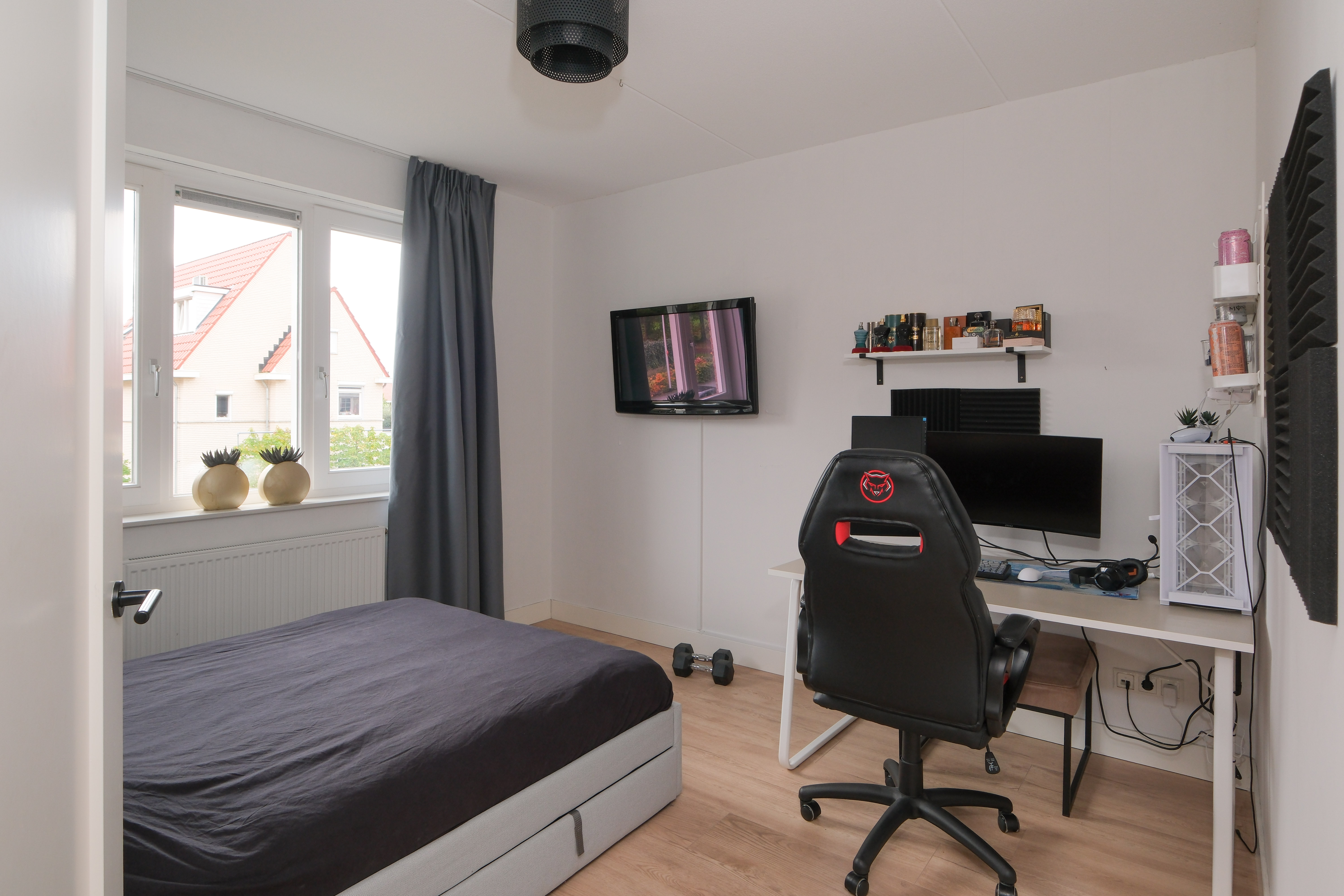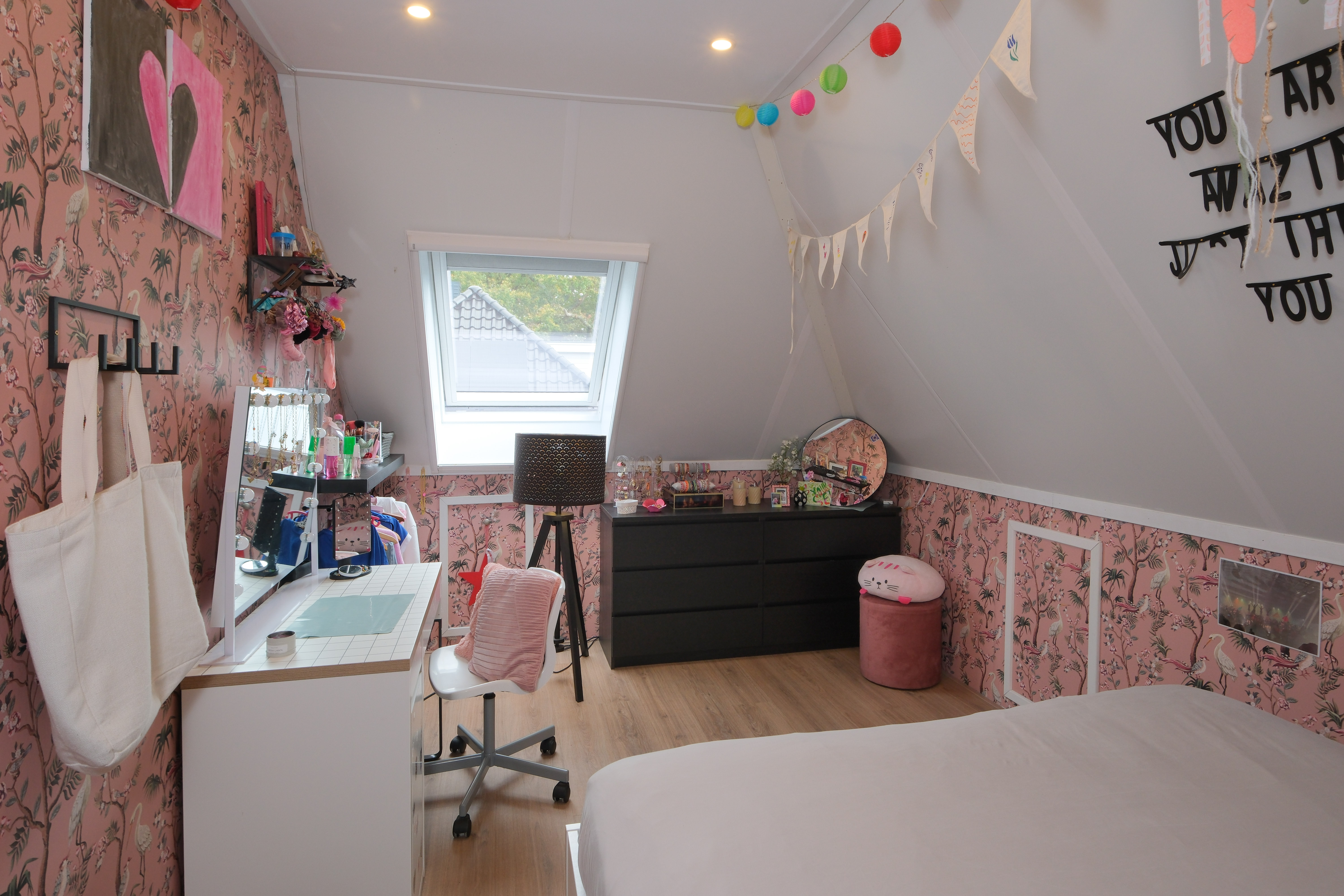 Via de tweede vaste trap kom je op de zolderverdieping: een royale voorzolder met o.a. de witgoedvoorziening, technische ruimte, volop bergmogelijkheden plus een prachtige 5e slaapkamer. Thuiswerkplek, speelzolder, hobbyruimte, alles kan, alles mag. Ook hier laminaat, dus meteen klaar voor gebruik.