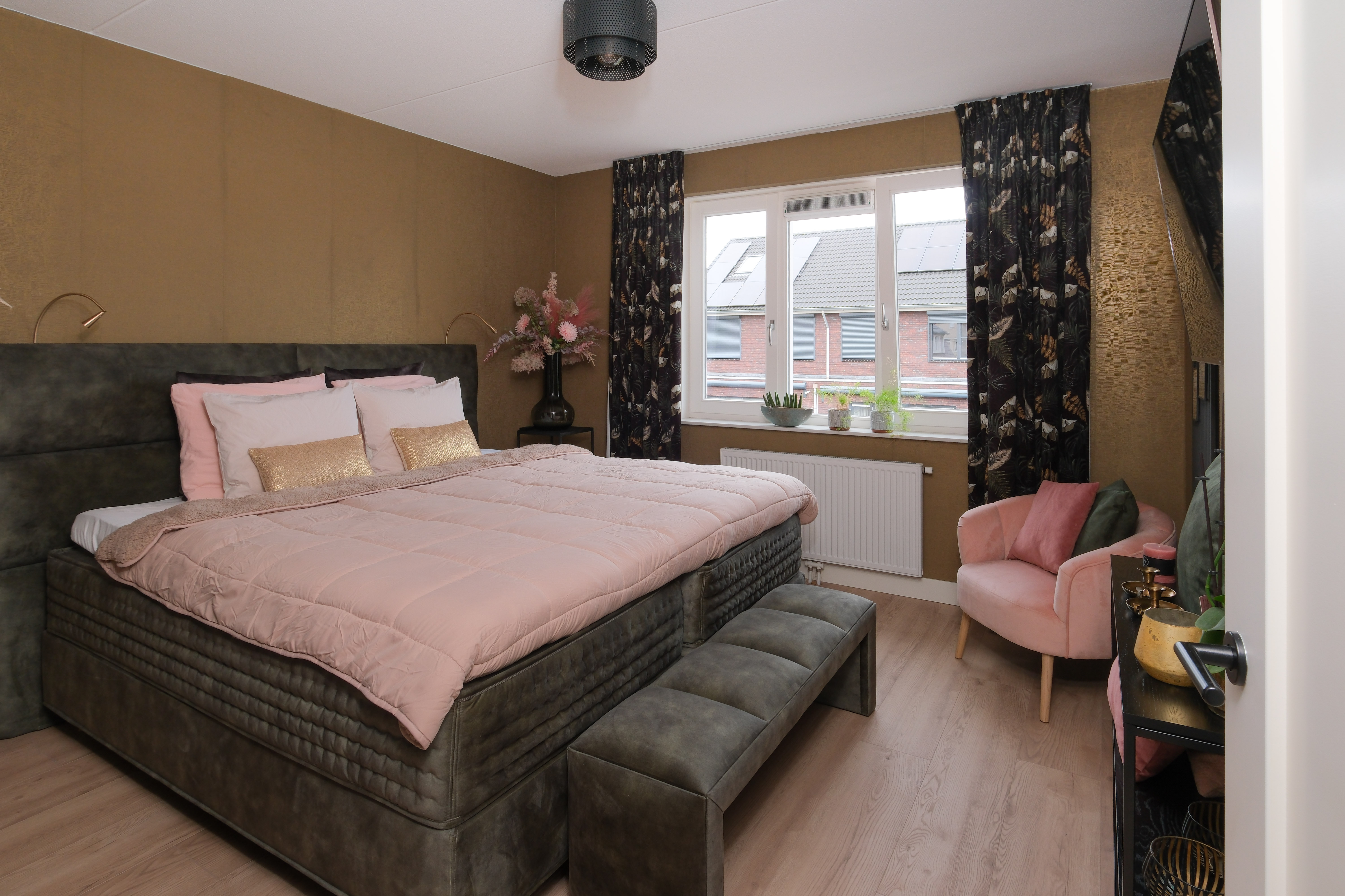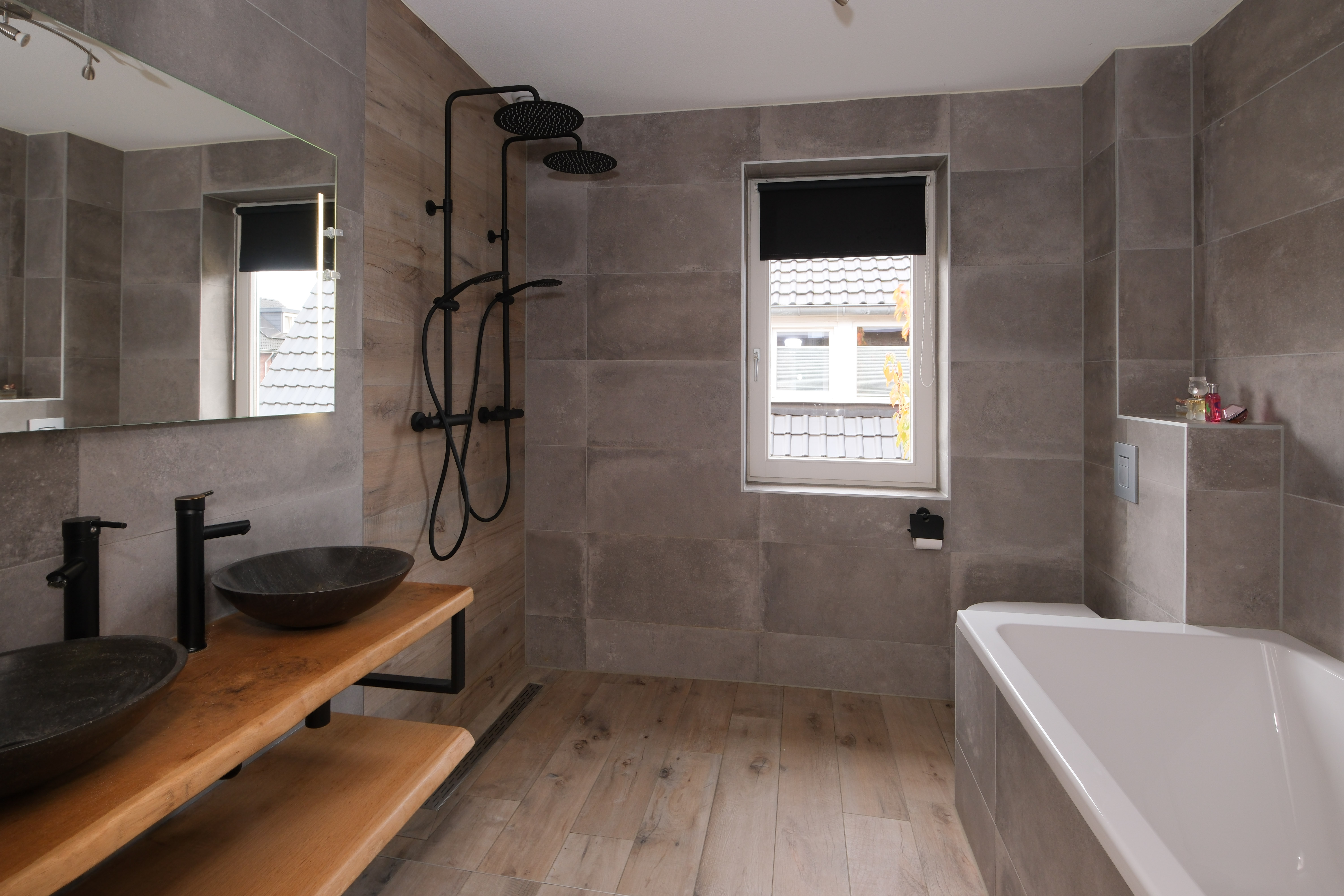Boven voelt het rustig. Drie slaapkamers én een briljante kleedkamer maken het dagelijks leven comfortabel; de strakke laminaatvloeren dragen bij aan de rustige look. De badkamer is een weldaad met dubbele waskommen, ligbad, duo-douche en vloerverwarming.