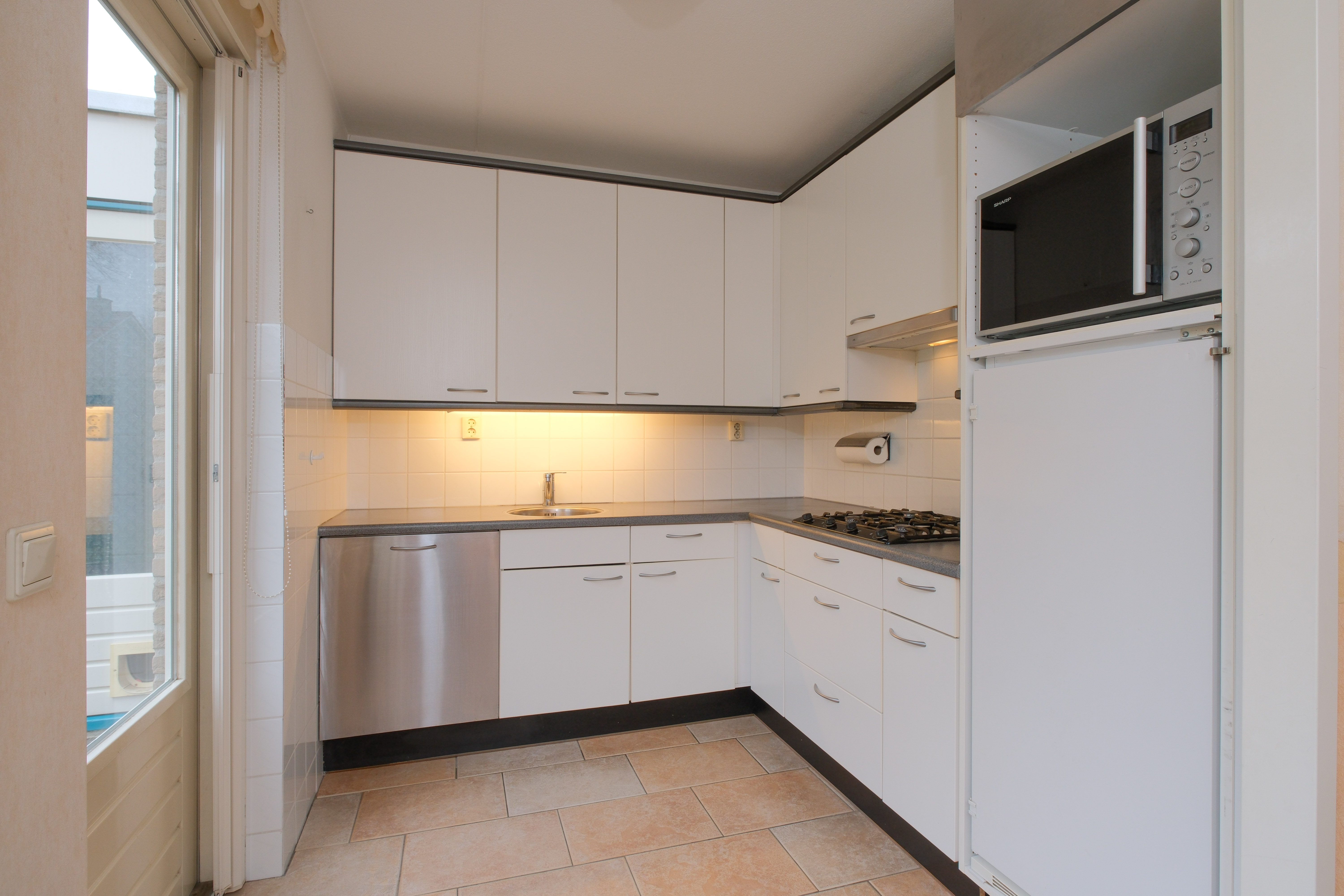 De halfopen keuken bevindt zich aan de achterzijde en is functioneel ingericht. Een goede basis.